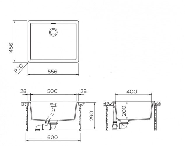 | Размер мойки | 556х456 |