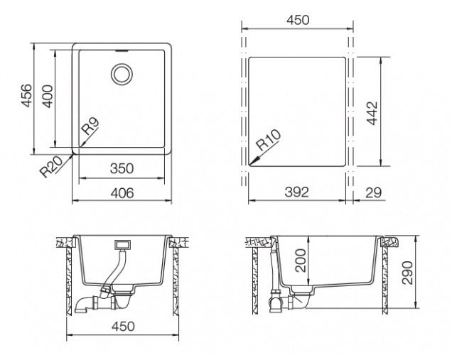 | Размер мойки | 406 х 456 |