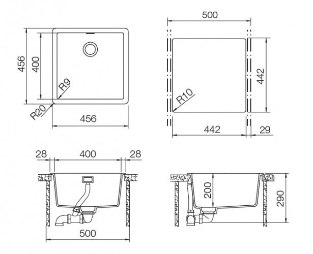 | Размер мойки | 456 x 456 |