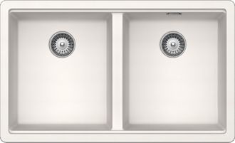 Отводная арматура с клапаном-автоматом и переливом для одной чаши, корзинчатый вентиль для второй чаши, сифон с возможностью подключения посудомоечной или стиральной машины, набор крепежа для врезного монтажа.