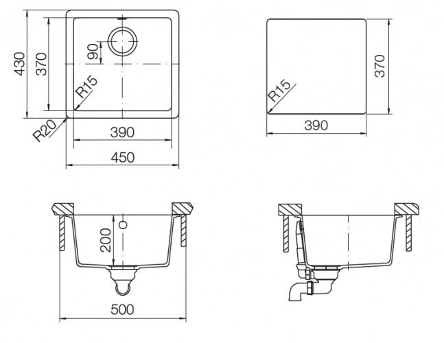 | Размер мойки | 450x 430 |
