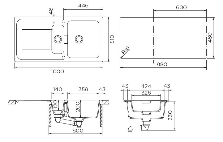 | Размер мойки | 1000 х 510 |