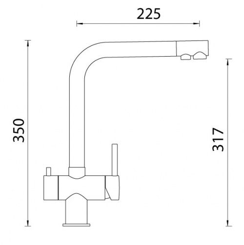 С выводом для питьевой воды. Вода после фильтра подается по отдельному водоводу и через отдельное отверстие в лейке смесителя. Прекрасное цветовое сочетание с мойками из материала CRISTADUR® и CRISTALITE®. Легкое подключение гибкими шлангами длиной 450 мм с гайкой 3/8”. Отверстие для монтажа 35 мм.